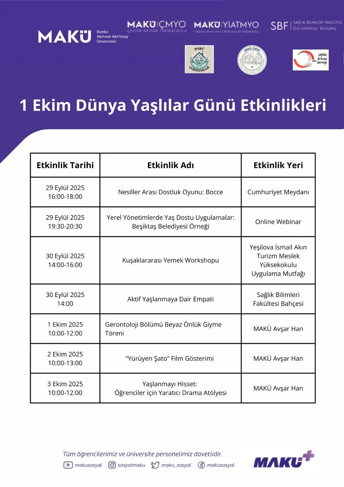 1 Ekim Dünya Yaşlılar Günü Etkinlikleri Listesi